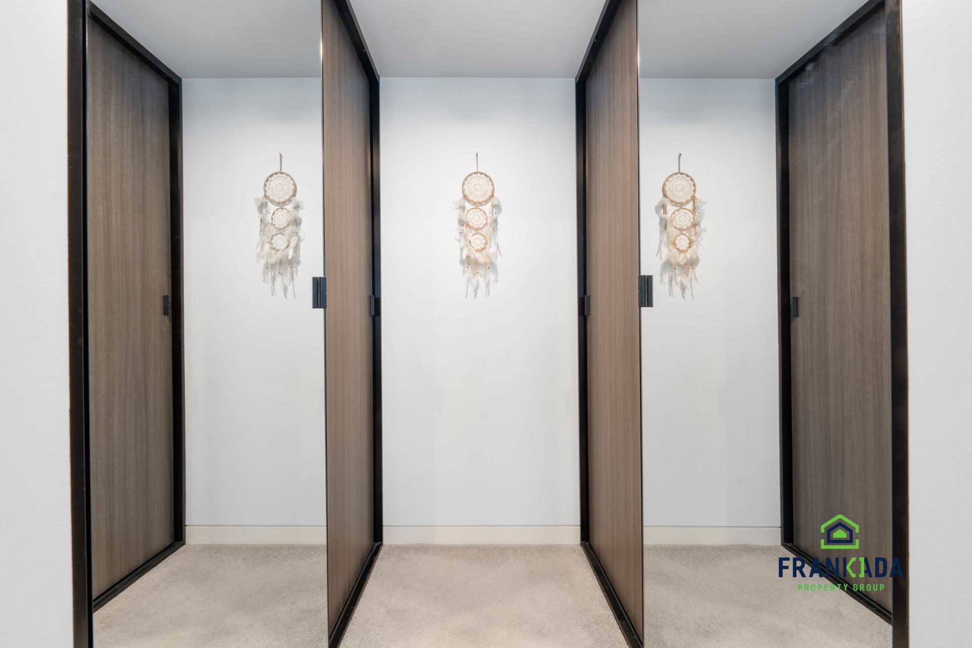 Carpeted bathroom with walk-in wardrobe and balcony access